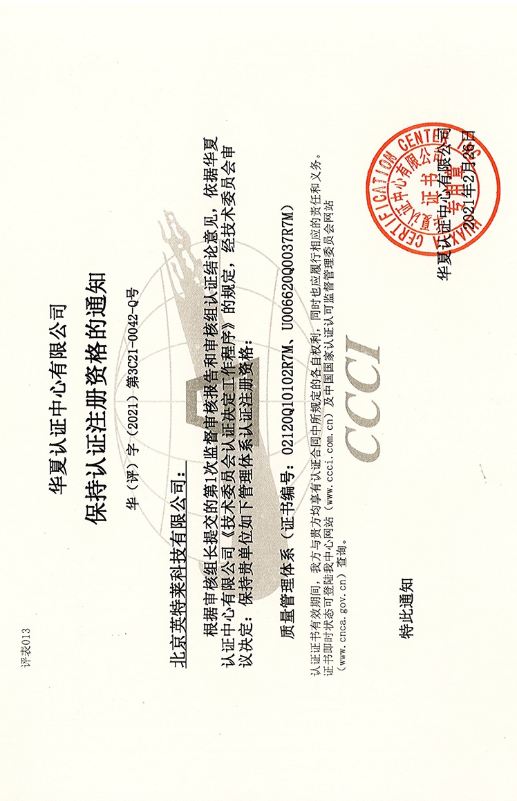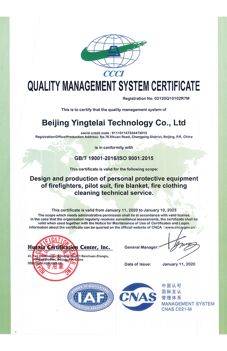 QUALITY MANAGEMENT SYSTEM CERTIFICATE-CHINESE