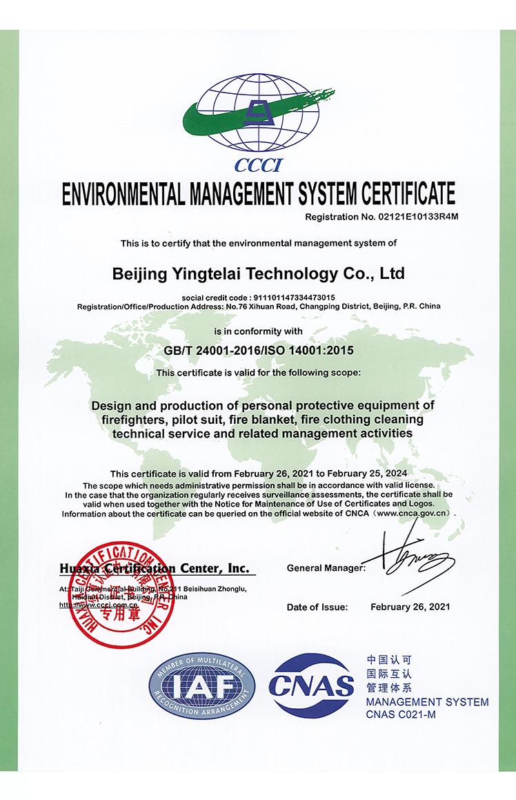 ENVIRONMENTAL MANAGEMENT SYSTEM CERTIFICATE-ENGLISH